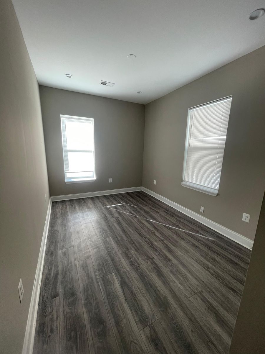 Available NowThis rent-ready apartment features laminate flooring, stainless steel appliances including a dishwasher, modern gray cabinetry, and crisp white countertops.